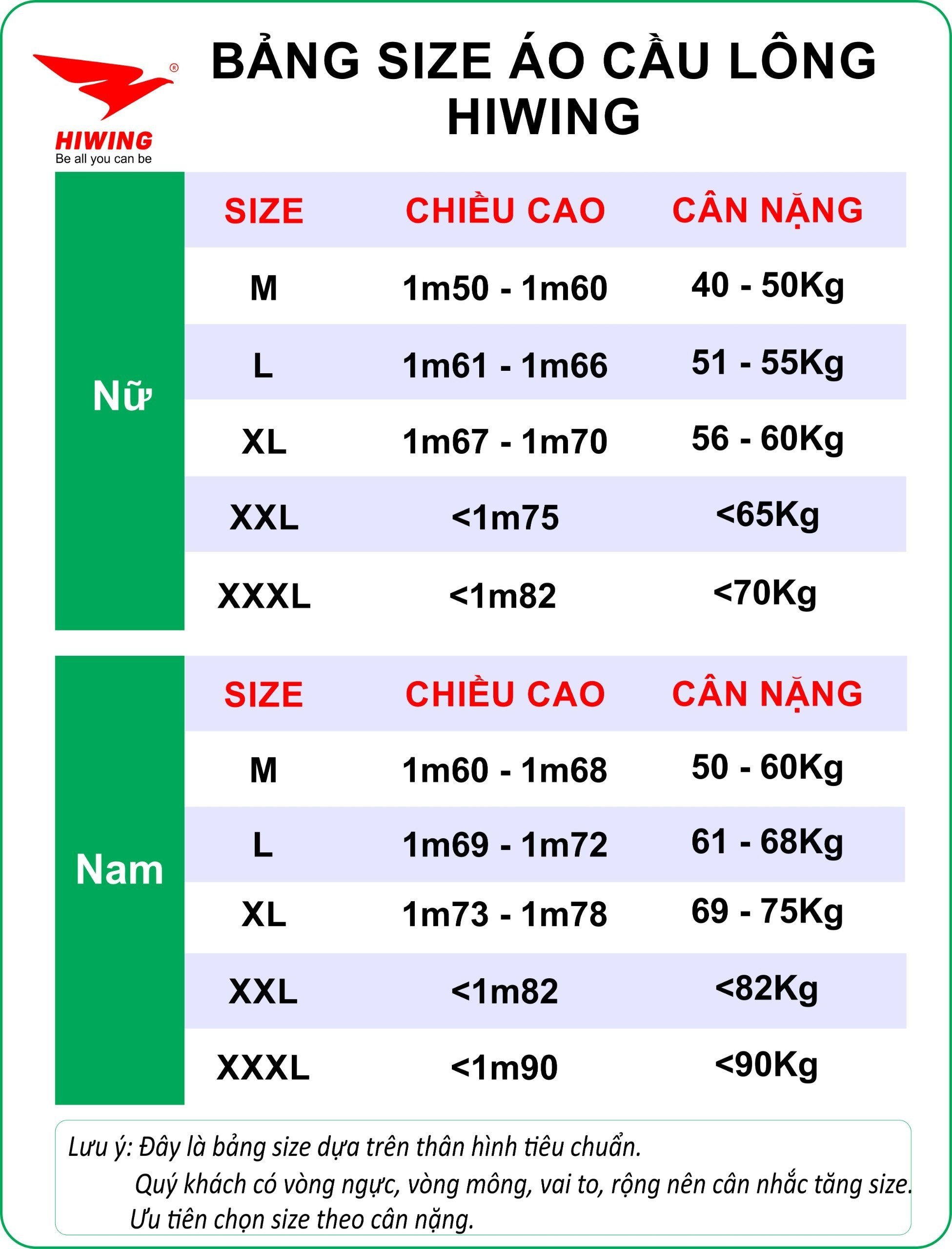 Hướng dẫn chọn size