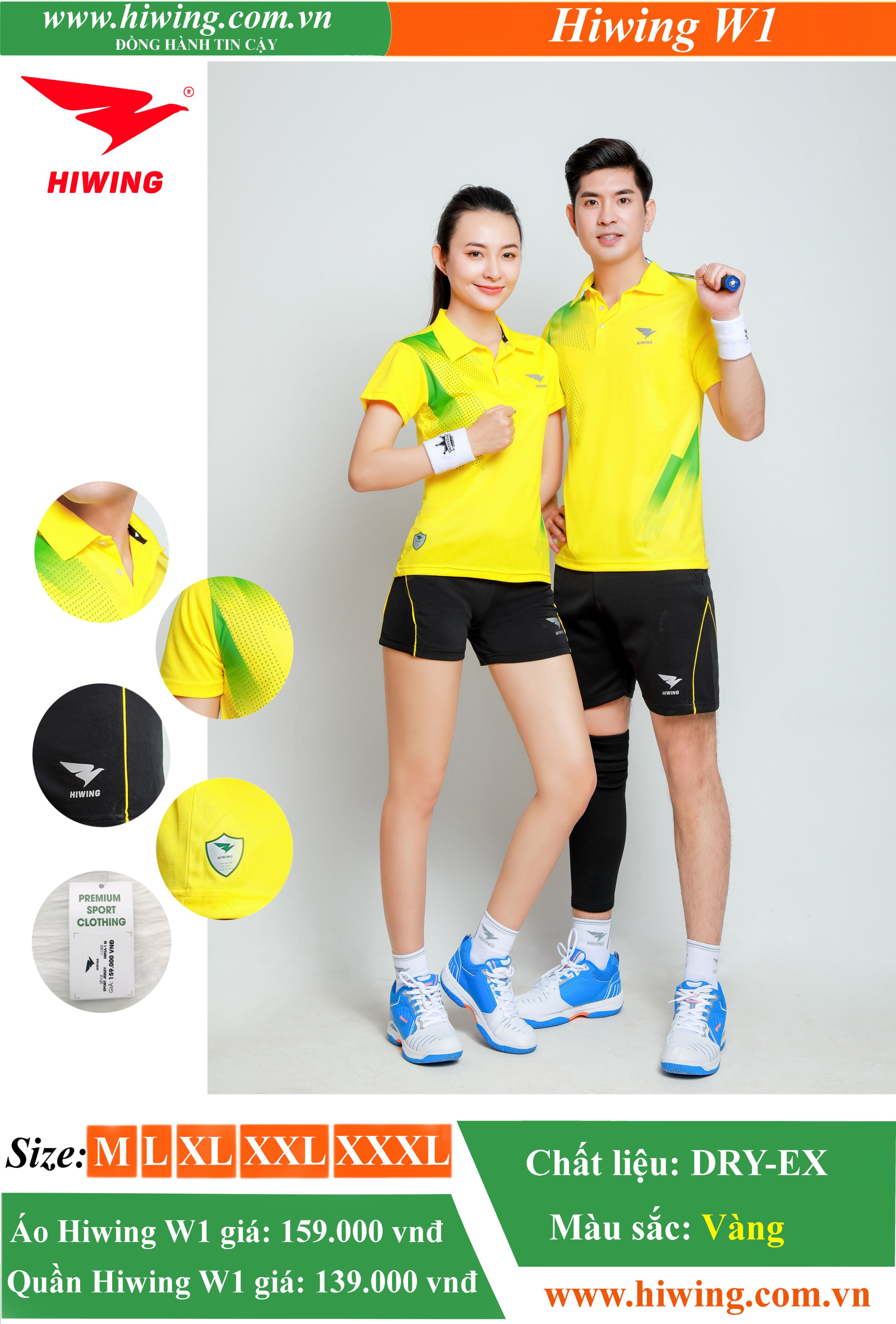 Áo cầu lông Nam HIWING-W1 màu Vàng